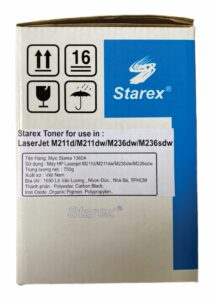 Mực in 136A/W1360A được sản xuất theo tiêu chuẩn với thông số kỹ thuật chính xác, vì vậy người dùng có thể hoàn toàn yên tâm về độ tương thích và tính ổn định của mực. Hộp mực Starex 136A/W1360A dùng cho các dòng máy in HP Laserjet M211d / M211dw / M236dw / M236sdw.